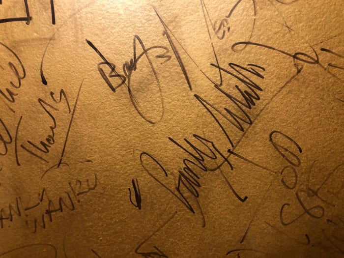 «Мой первый тур по штатам начался в Денвере, и меня приветствовали лучшие фанаты. Я мог видеть этот знак примерно на полпути сквозь спину толпы, а ближе к концу пара, сделавшая это (муж и жена) удалось выбраться вперед! »